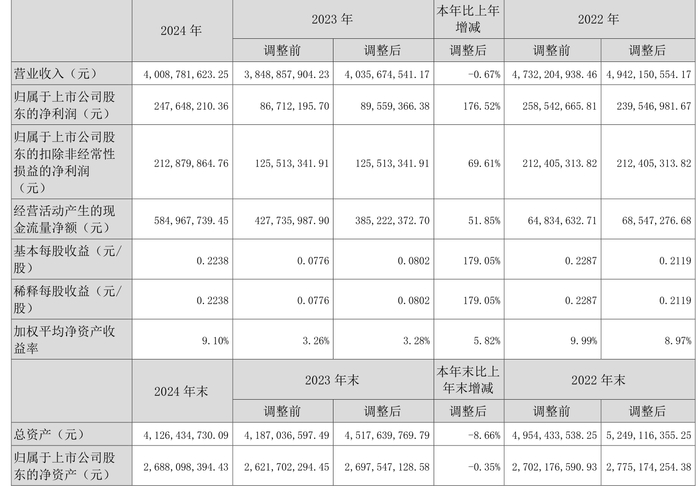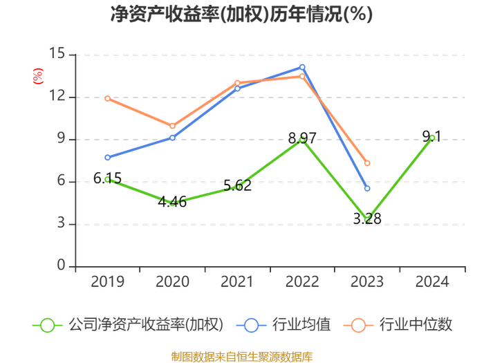 数据显示,2024年公司加权平均净资产收益率为9.1%,较上年同期上升5.82个百分点。公司2024年投入资本回报率为7.25%,较上年同期上升4.86个百分点。