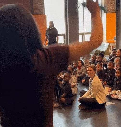 之前宣传自己的新书《飞向太空的苍蝇》,就一身简单的棕色T恤+浅色牛仔裤造型,蹦蹦跳跳跑到了小朋友当中,一下就把气氛带动了起来。