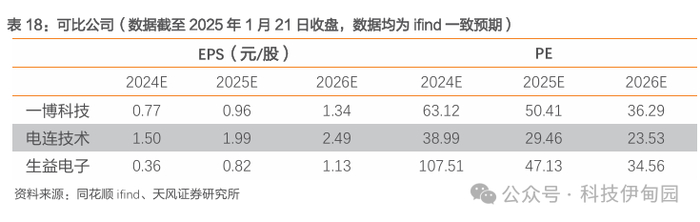 估值方面,我们选取同为PCB产品生产厂家的一博科技、电连技术和生益电子作为可比公司,三家公司作为国内PCB生产的主要供应商,其主要产品分别覆盖汽车、风光储、消费电子、医疗等领域,这与世运电路相似。结合公司产品/地位给出一个合理的估值的锚: