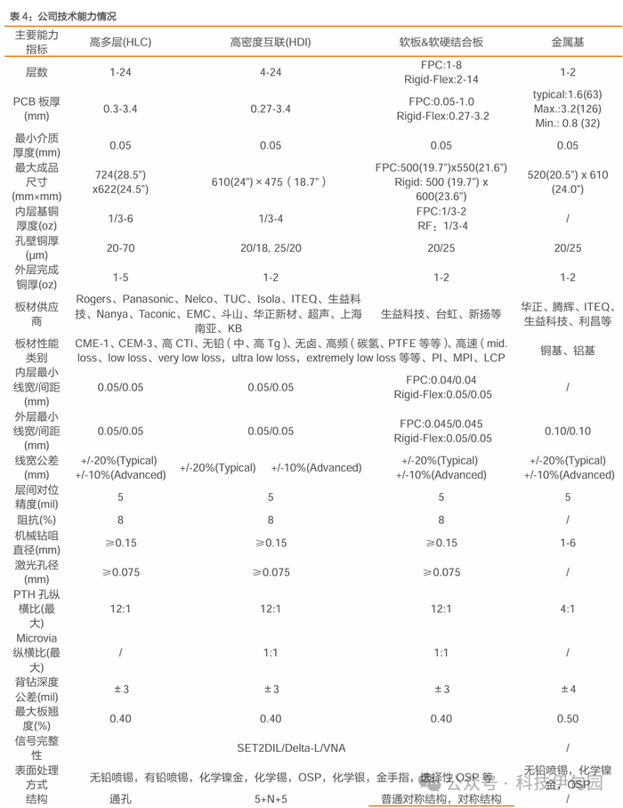 公司经过多年发展,掌握多项PCB先进技术,积累深厚。目前公司具备量产能力的产品包括单双面板、高/多层板、任意层互联、软板、软硬结合板、半软板、汽车用高散热铝基/铜基板、埋铜块板等,产品涵盖汽车电子、服务器/存储/高性能计算、风光储、消费电子、工业、医疗和通讯等领域。为了应对丰富的应用场景和不断演进的技术路线,公司一直紧跟核心客户的发展步伐,致力于自主研发、创新和持续技术升级。如今,公司已经实现了24层硬板、5阶HDI(包括任意层互连)、6oz 厚铜多层板、多层软板、多层HDI软硬结合板的批量生产能力。