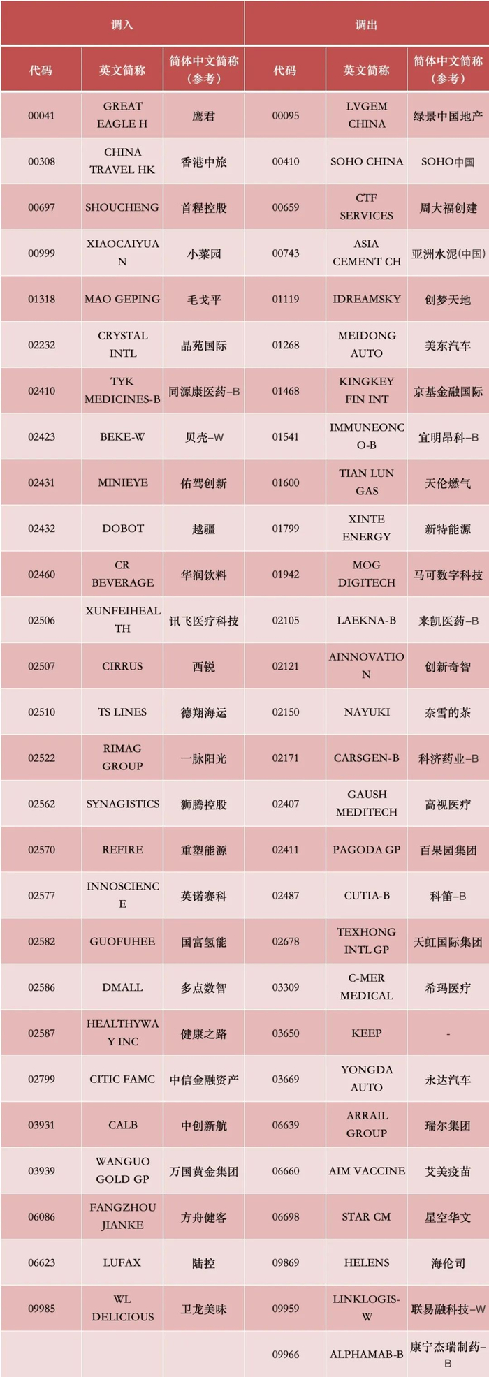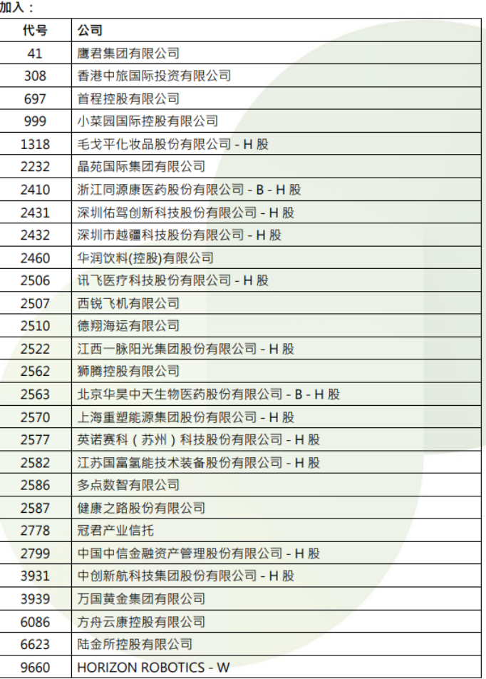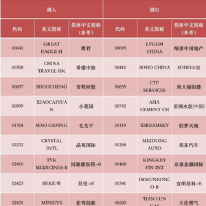 港股通标的调整,恒生科技指数、恒生综合指数等成份股调整!