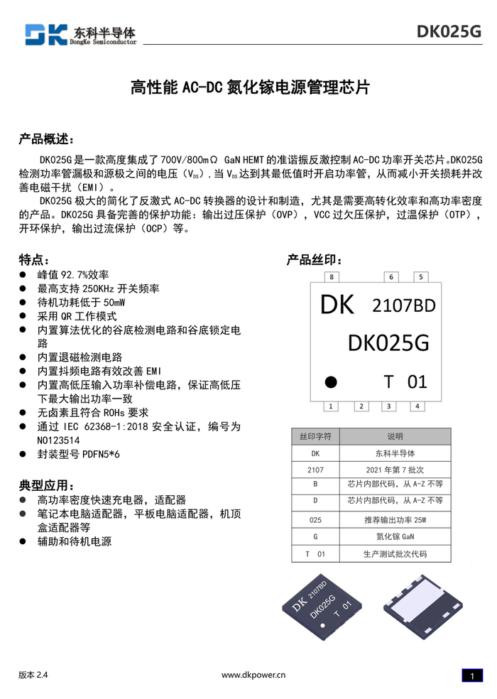 东科半导体 DK025G 资料信息。