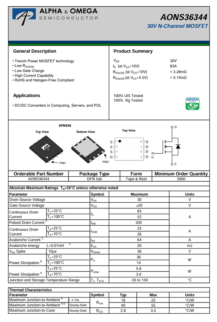 万国半导体 AONS36344 资料信息。