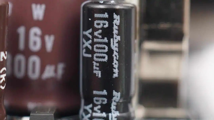 滤波电容来自红宝石,为YXJ系列电解电容,规格为16V100μF。