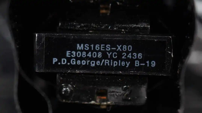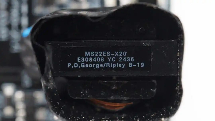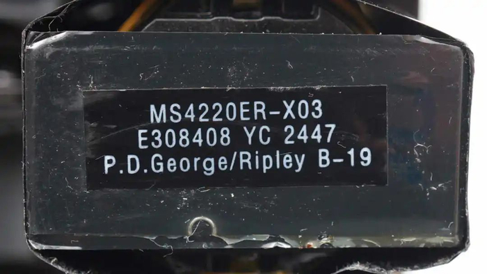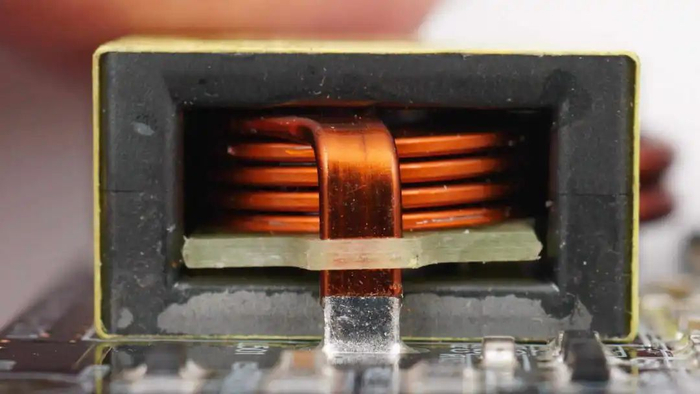 开关变压器磁芯贴纸特写。