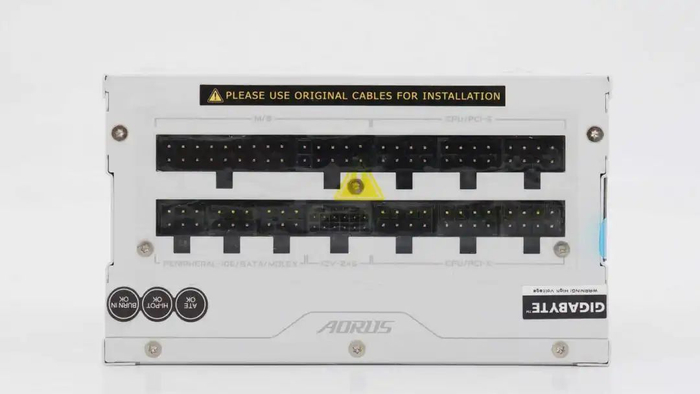 电源侧面设有凹陷,用于安装磁吸板,磁吸板印有AORUS和1000字样。