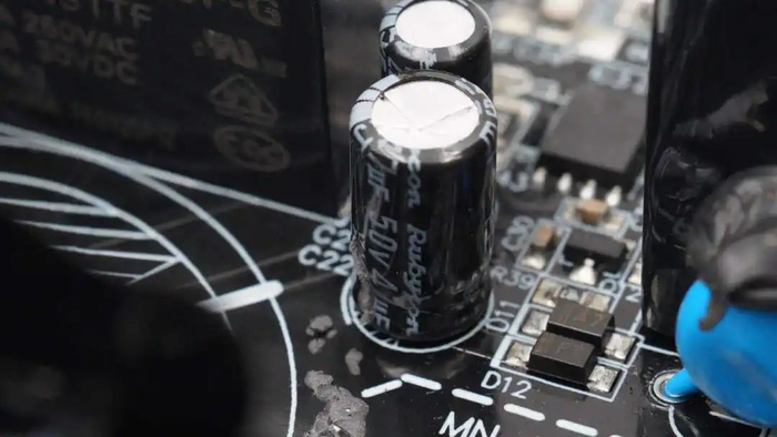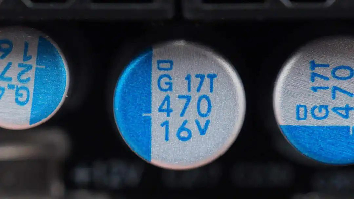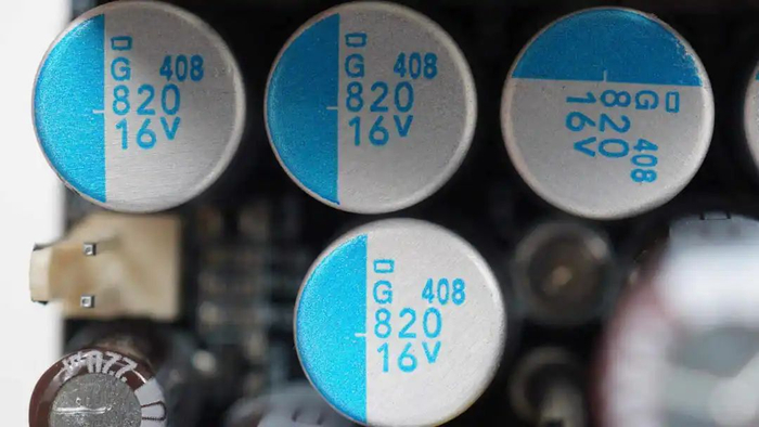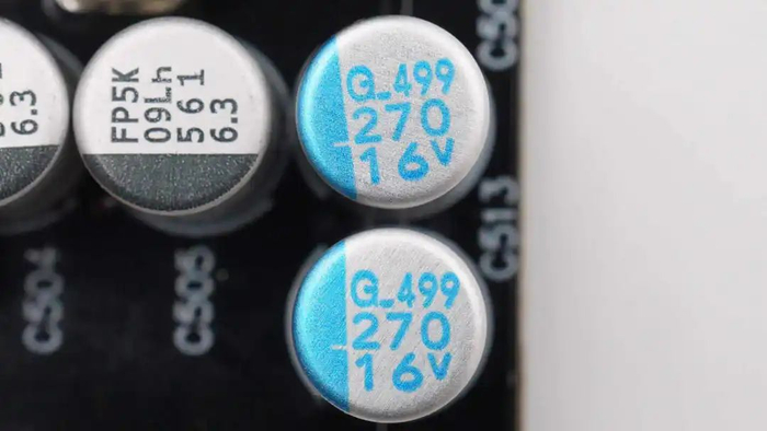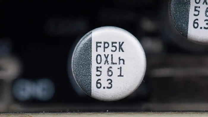 固态电容来自贵弥功,为PSG系列小型化固态电容,具备20000小时寿命,规格为470μF16V,共计7颗。