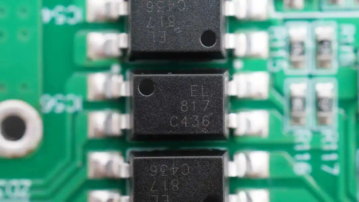三颗亿光EL817光耦用于输出电压反馈和保护控制功能。