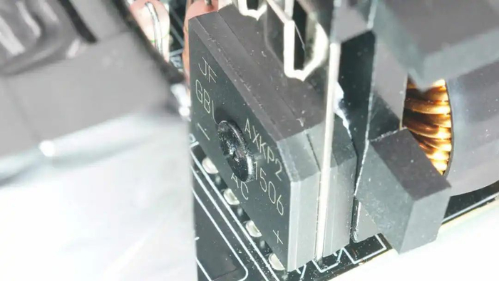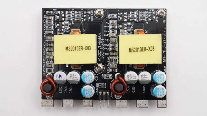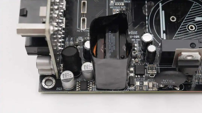 技嘉电源内部电容全部为日系品牌,高压主电容来自尼吉康,容量为1000μF。输出滤波电容来自贵弥功和尼吉康品牌。待机电源芯片采用东科合封氮化镓芯片DK025G,搭配使用DK5V60R15VP同步整流芯片。电源内部用料均为知名品牌,有效提升输出的可靠性和使用寿命,满足高端玩家要求。