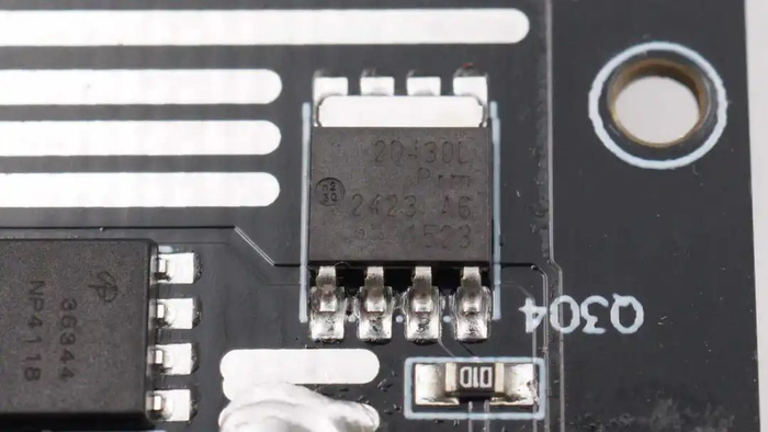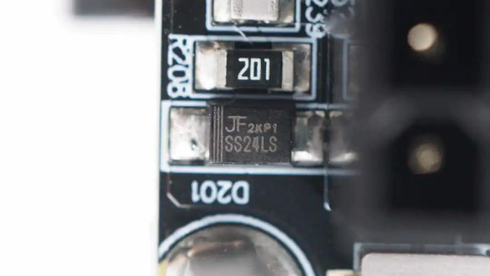 降压芯片外置的二极管特写。