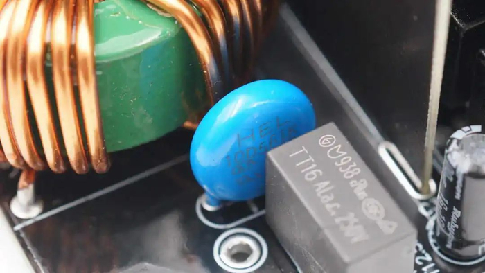 压敏电阻来自鸿志,型号10D561K,用于吸收过压浪涌。