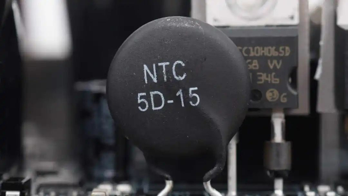 NTC热敏电阻丝印5D-15,用于抑制为高压电容充电的浪涌电流。