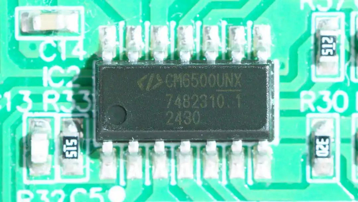 PFC控制器来自虹冠,型号CM6500,这是一颗EPA/90+ ZVS-Like PFC控制器,专为全负载和轻负载下的高效电源设计,采用SOP-16封装。