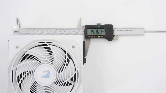 使用游标卡尺测得电源机身长度约为140.6mm。