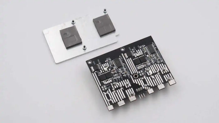 小板背面设有散热铝片,通过螺丝固定。