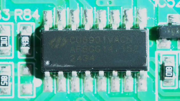 LLC控制器来自虹冠,型号CM6901,是一颗次级侧的LLC+同步整流二合一控制器,通过隔离变压器来驱动初级开关管,并具备同步整流控制信号输出,采用SOP16封装。