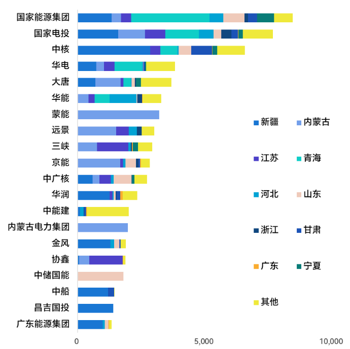 图:2024年储能并网规模前20位的业主及其项目地域分布