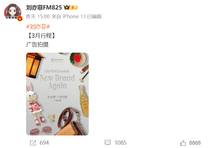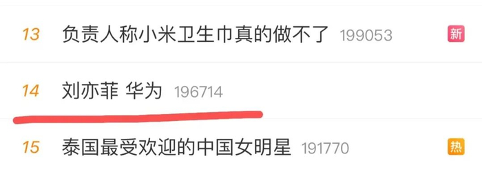 3月8日下午,“刘亦菲 华为”“刘亦菲余承东互关”等词条冲上微博热搜。