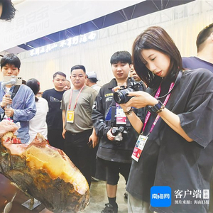 在第二十七届冬交会定安馆,张永新用定安黑猪后腿研制的西班牙风味火腿吸引了不少关注。资料图