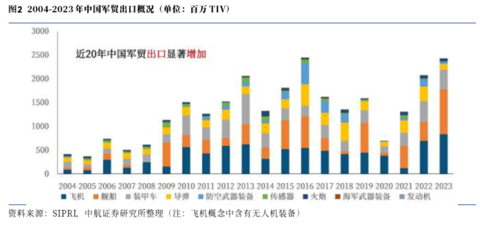 ③ 在复苏的军贸市场中,航天防务板块的关注度有望得到进一步提升。面对国际防务市场结构性机遇,我国军工企业正从被动响应转向主动布局。依托“一带一路”战略支点,通过构建“研发-生产-服务”全价值链体系,有望在国际军贸市场形成差异化竞争优势,形成“以内促外、以外强内”的双循环发展模式。另外,在近年来地域冲突中得到广泛应用的导弹、智能弹药以及巡飞弹等航天防务装备,在国际军贸市场上的关注度也有望持续攀升,将受益于军贸发展第二曲线的底层增速提升,以及军贸装备品类交易量占比的显著增长。