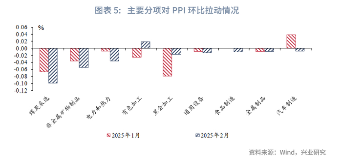 2月PPI同比录得-2.2%,较上月回升0.1个百分点,低于市场预期的-2.1%。春节后进入工业生产淡季,多数建筑项目停工影响建材需求,价格回落。以旧换新补贴行业,其制造业价格有所改善。国际油价波动传导,带动国内石油相关行业价格下行。