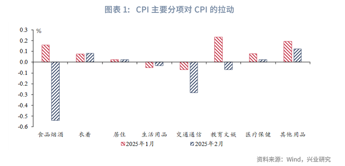 后市来看,春节错月扰动退去,3月CPI有望重新反弹至0%附近。食品价格方面,第一季度猪肉消费淡季,生猪价格或稳中有降。原油方面,参考兴业研究外汇商品团队的观点,特朗普政府意愿维持油价低位,短期油价或仍有一定回落空间。