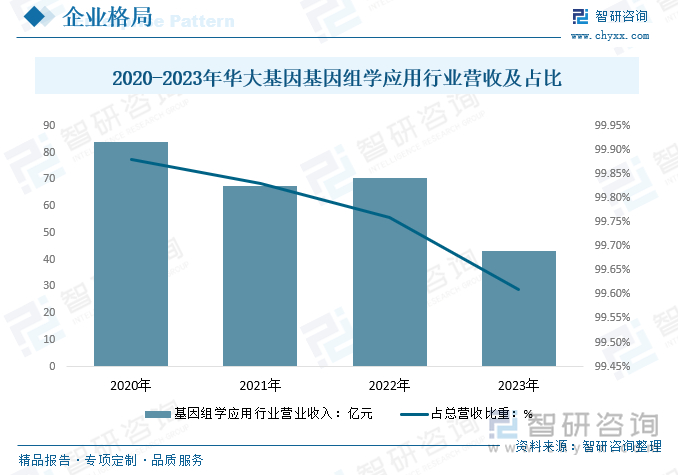华大基因利用基因测序、质谱、基因合成、大数据、云计算等技术,率先面向全球客户提供基于基因组学、转录组学、表观基因组学、单细胞组学、时空组学、蛋白质组学、代谢组学等多组学的大数据采集、分析和挖掘的综合解决方案服务。截至2023年,华大基因多组学大数据业务已经覆盖了全球100多个国家和地区,拥有5000多家合作单位,为20000多位合作伙伴提供了杰出技术服务。2023年,华大基因基因组学应用行业营业收入43.33亿元,占总营收的99.61%。