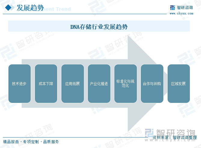 随着技术不断成熟和市场需求的增长,DNA存储行业未来将呈现技术进步、成本下降、应用拓展、产业化推进、标准化与规范化、合作与并购以及区域发展的趋势,DNA存储技术有望在多个领域得到广泛应用,成为未来数据存储的重要解决方案。