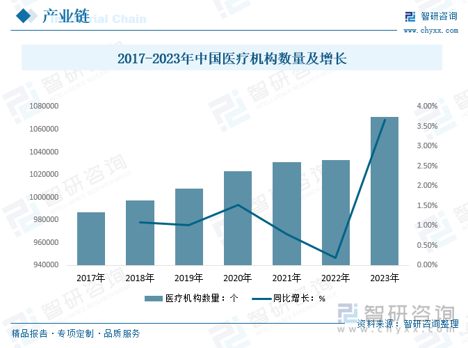 医疗机构是DNA数据库的重要应用场所。医院和诊所通过基因检测,为患者提供个性化的医疗服务。DNA数据库在医疗中的应用包括遗传病诊断、药物反应预测、个性化治疗方案制定等。近年来,随着我国卫生事业的快速发展,中国医疗机构得到较快发展。2023年我全国医疗卫生机构总数1070785个,比2022年增加37867个。