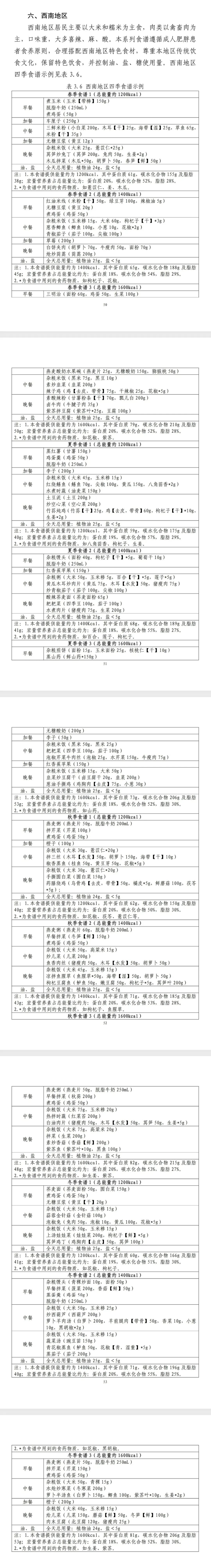 值得注意的是,这份食谱细化到了全国不同地区的食谱示例,并备注了食谱的“总能量”。