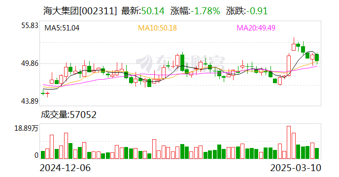 海大集团此前发布的2024年业绩快报显示,公司2024年实现营业总收入1146.85亿元,同比下降1.23%;实现归属于上市公司股东的净利润45.16亿元,同比增长64.73%。报告期内,公司禽料外销量约1270万吨,同比增长约12%;猪料外销量约560万吨,同比小幅下滑约3%;水产料外销量约580万吨,同比增长约11%;反刍料及其他等外销量约30万吨。