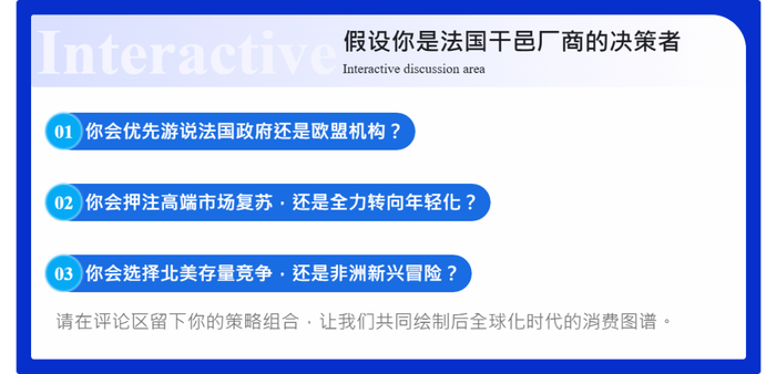 开发低度化、风味创新产品(如茶味干邑),切入酒吧、电商等新渠道。