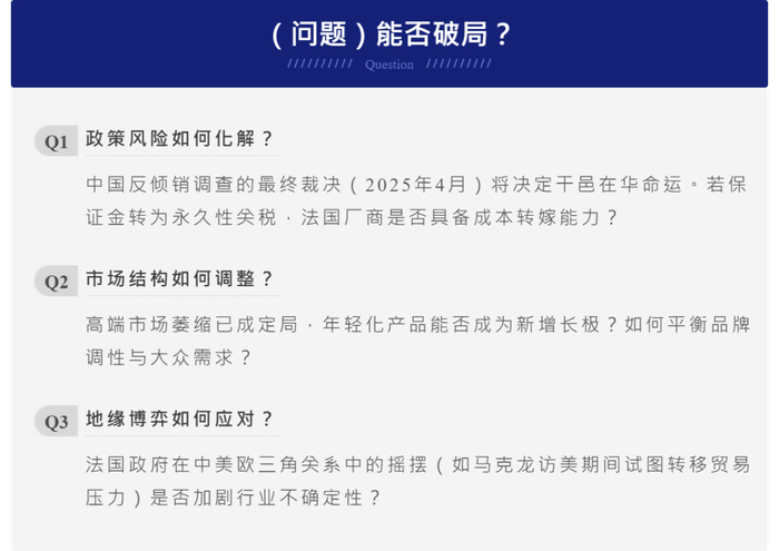 法国需放弃在欧盟对华政策中的“带头冲锋”角色,通过独立外交渠道争取豁免或过渡期。BNIC已多次呼吁政府“通过政治手段解决政治问题”。