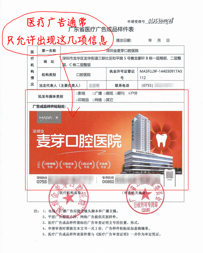 4. 医疗机构应当按照《医疗广告审查证明》核准的广告成品样件内容与媒体类别发布医疗广告;