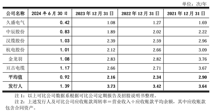 报告期内,公司应收账款(含合同资产)周转率分别为3.64、3.42、3.73和1.39,高于同行业可比公司平均水平,一方面系发行人的业务结构、客户结构等与同行业可比公司存在一定差异,导致回款周期亦存在差异;另一方面,报告期内,公司加强应收账款回收管理,提高资金周转效率。