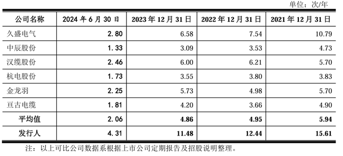 报告期内,发行人存货周转率分别为15.61、12.44、11.48和4.31,存货周转率高于同行业可比公司平均水平,一是公司融资渠道相对单一,为减少存货对运营资金的占用,公司通常根据在手订单等情况合理备货;二是公司主要销售区域为华南区域,运输周期短,发出商品余额较低;三是公司对电网客户销售占比较高,电网客户一季度因天气和节假日等原因,订单需求减少,公司备货减少,导致年末存货余额较低。