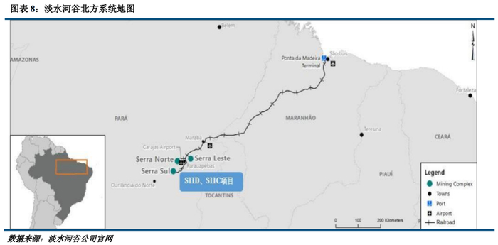东南部系统:维护升级下生产保持稳定,未来产量和质量增长可期。四季度东南部系统产量2209.7万吨,同比增加2.32%,环比减少7.93%。东南部系统Brucutu第四条加工线进入调试运行阶段,使得Brucutu产量达到2019年的最高水平,推动东南部系统季度产量同比增加,但由于Conceição 2号工厂处于维护检修状态,Brucutu部分增量被抵消,整个东南部系统季度产量环比下降。2024年11月淡水河谷的卡帕内马项目进入调试状态,有望在2025年为东南部系统继续提供增量。
