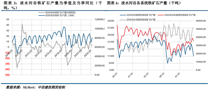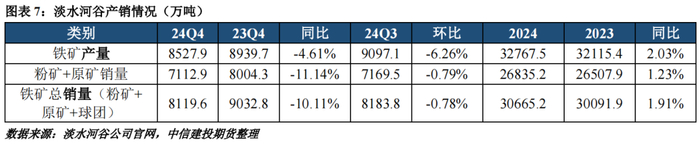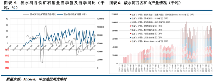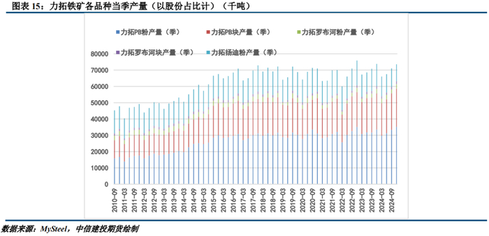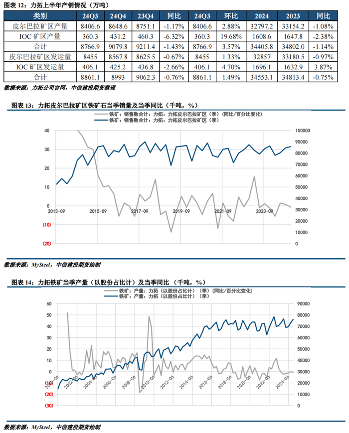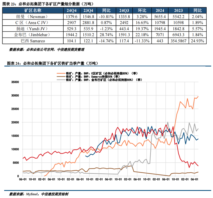 分矿区看,西澳地区的金巴布矿区2024年产量同比大幅增长11.61%,扬迪矿区和巴西Samarco矿区产量下滑。