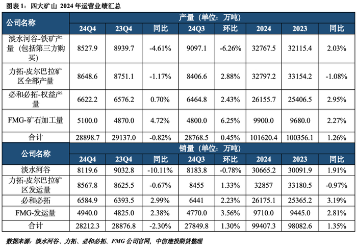 【建投黑金】铁矿石:2024年四大矿山产销梳理
