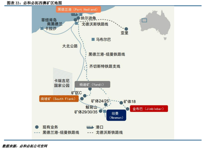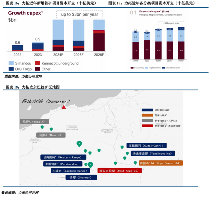 罗德岭项目(Rhodes Ridge):力拓计划在2025年完成项目可行性研究,当前项目预可行性研究顺利进行,获得相关批准后,首个矿区将在十年内建成,初期工厂年产能预计为4000万吨。
