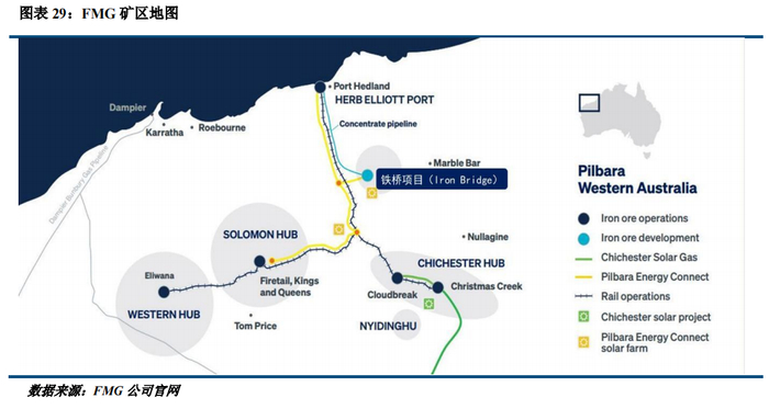 此外,FMG仍在继续推进皮尔巴拉地区的矿产勘探,重点聚焦Mindy South、White Knight 和 Wyloo North 的钻探项目,以及所罗门(Solomon)和奇切斯特枢纽(Chichester Hub)附近的矿石资源勘探,以确保未来铁矿石供应的可持续性。