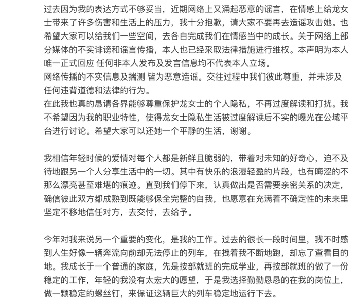 演员何健麒发文回应劈腿传闻:对于恶意造谣已采取法律措施进行维权