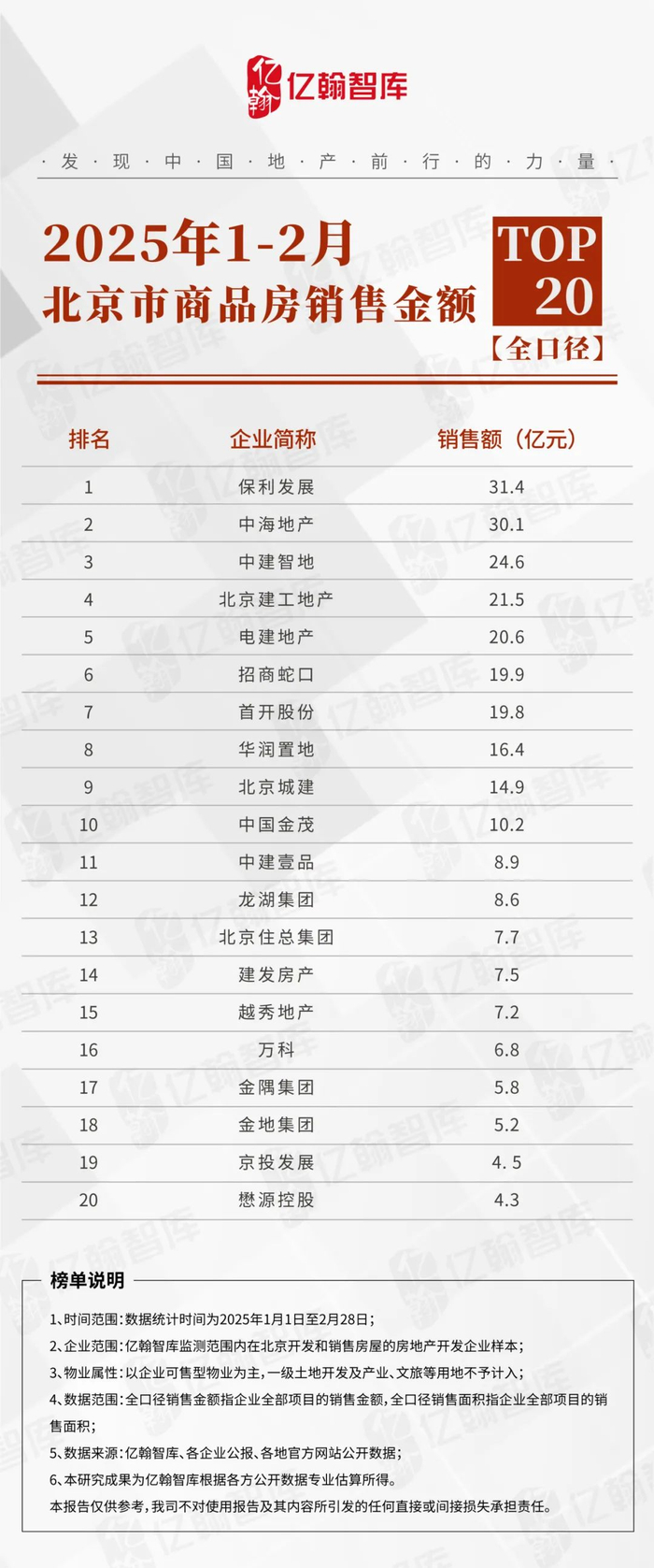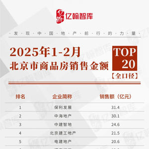2025年1-2月北京市商品房全口径销售金额TOP20