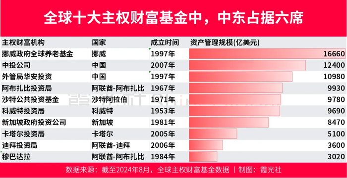 20只中东主权财富基金掌管的资产总规模,占全球主权财富基金的40%以上。其中,海合会六国(沙特、阿联酋、卡塔尔、科威特、阿曼、巴林)的主权财富基金的体量高达4.5万亿美元(折合人民币超30万亿元)。