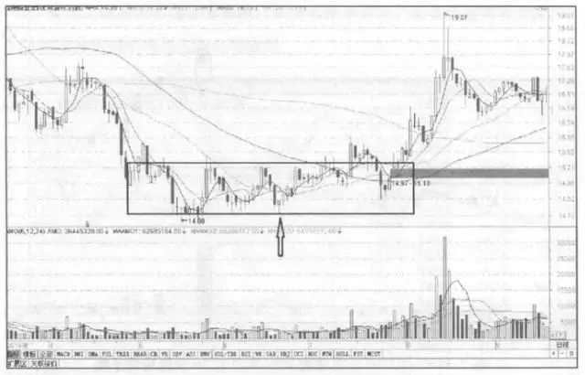 1,股价充分下跌后,在底部形成的箱体结构。