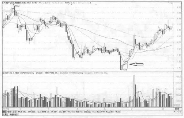 2,6月26日,锤子线出现在底部,这是一种看涨的信号,临盘可轻仓介入,次日加阳确认,当股价站在锤子线上方可再次介入。