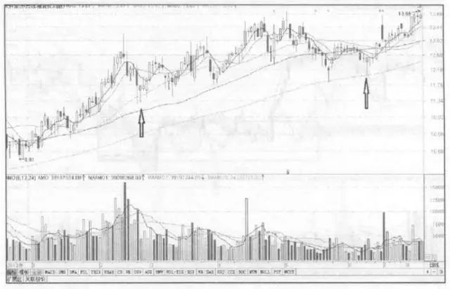 1,股价从低位启动,经过一波上涨,处于波段上涨的高位,并且涨幅近100%。