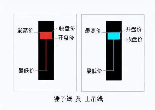 它们有两种颜色,可以是阳线也可以是阴线,也就是无论是涨或跌都可以形成锤子线或上吊线。