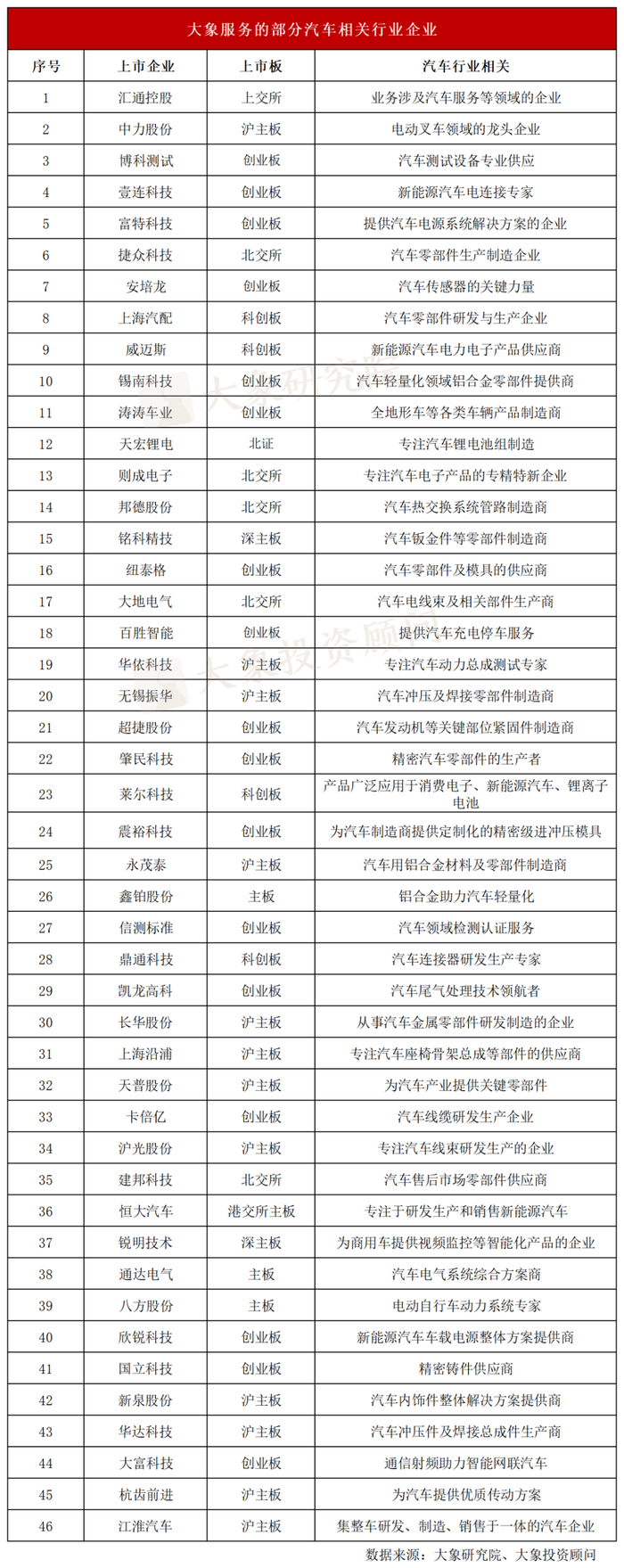 汽车行业作为经济发展的强劲引擎与科技创新的前沿阵地,是产业升级的关键驱动力。据不完全统计,在汽车相关行业里,大象投顾已服务的汽车行业企业数量在同类型服务机构中名列前茅。