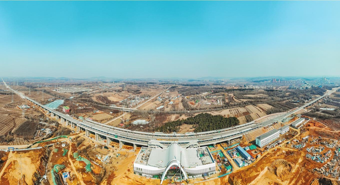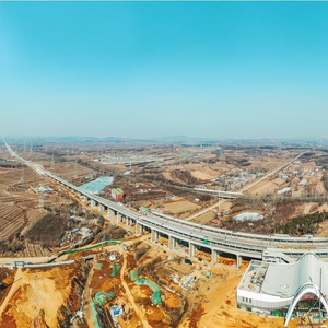 早春三月,沈白高铁伯官站已初具规模,三个红色大字的站牌已经安装就位,目前站台、站房的整体进度已经完成95%。作为新建车站,伯官高铁站站房面积达到8000平方米,在造型设计上体现了“浑河之水 日出伯官”的意象。